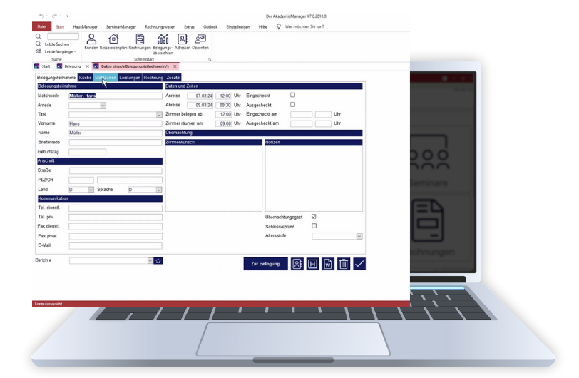 Mit dem Haus- und AkademieManager managst du Seminare, Gäste, Räume und Abrechnungen mühelos. Umfangreiche Module,