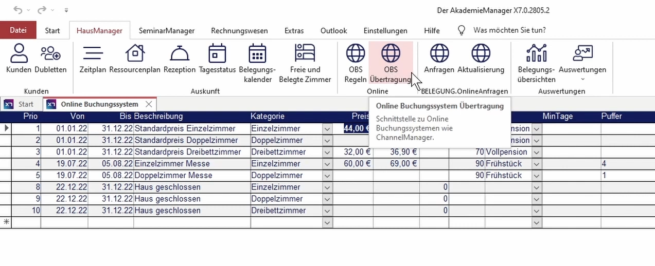 • Die Grundkonfiguration im HausManager in Bezug auf die Anlage der Zimmerkategorien